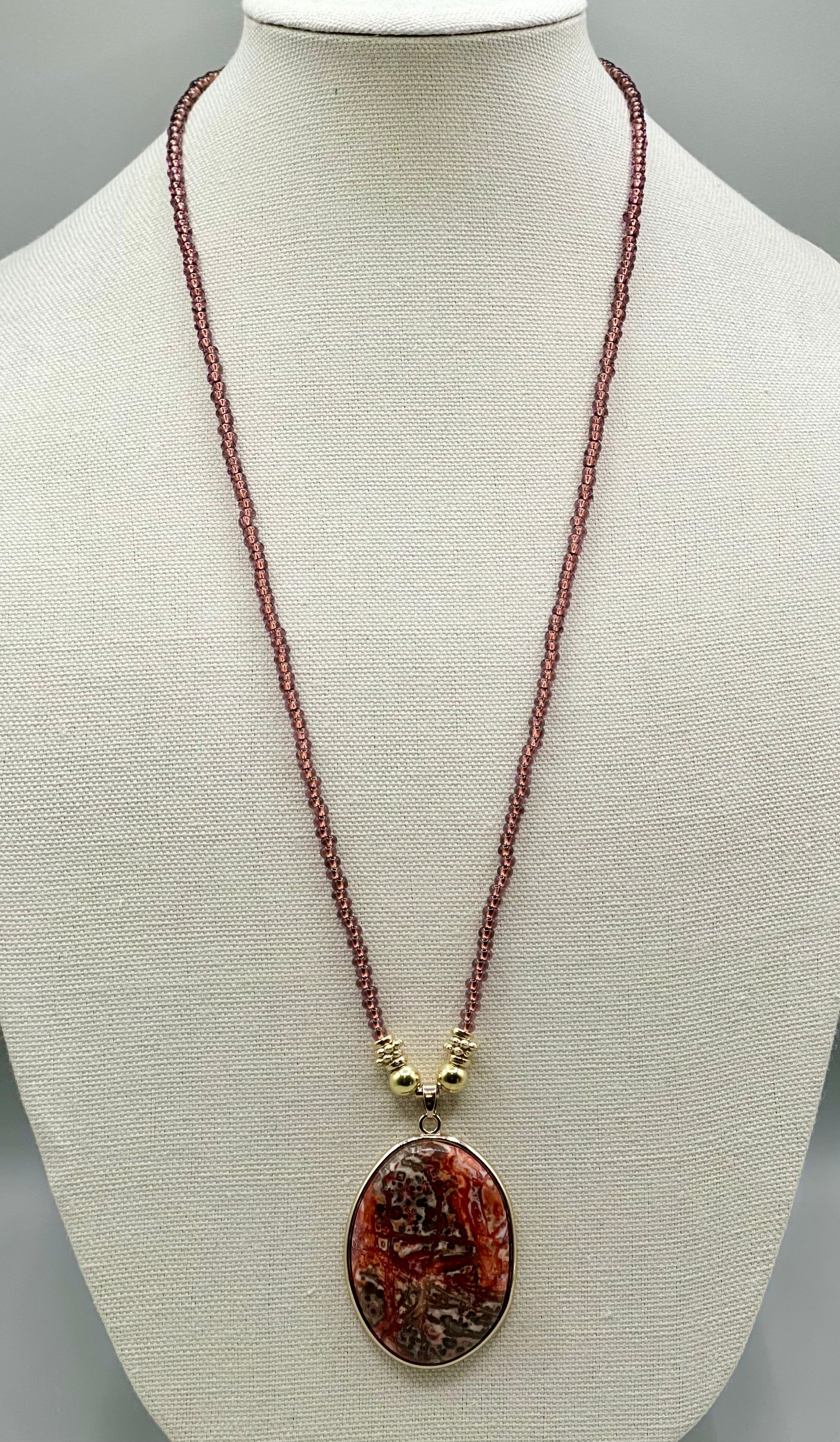 Geode Brown Czech Seed Beads with Jasper Pendant
